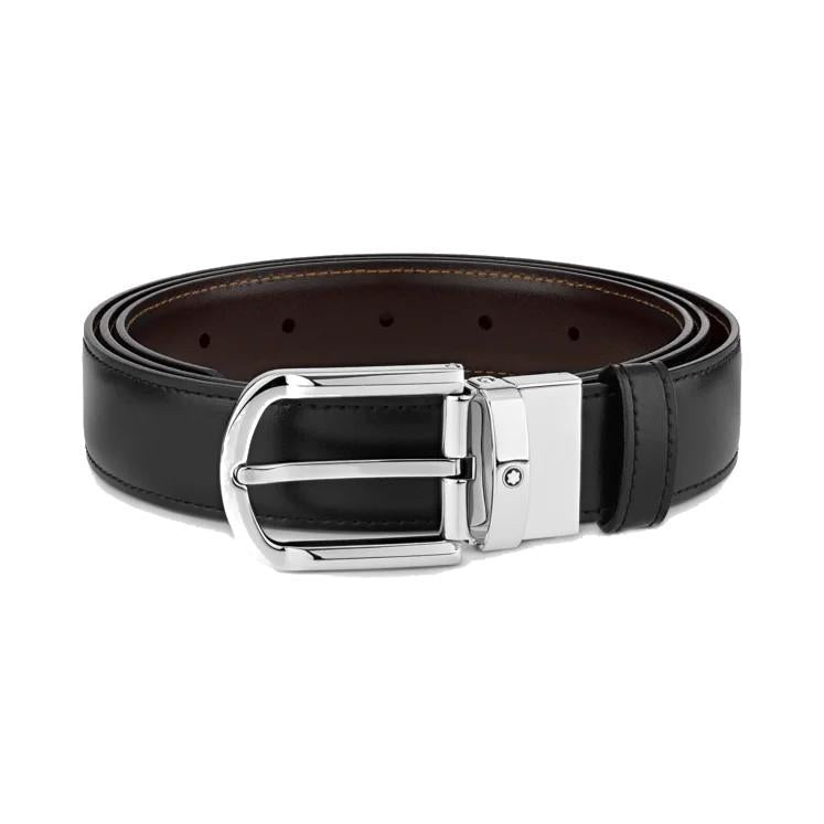 Cintura Montblanc reversibile in pelle nera/marrone 30 mm con fibbia a ferro di cavallo