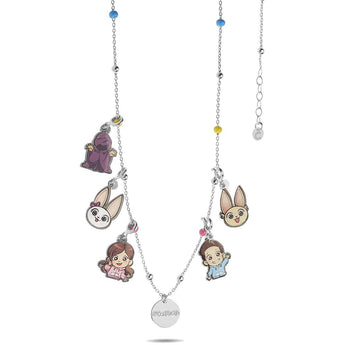 Collana in argento 925 di Me contro Te con pendenti smaltati, chiusura a moschettone, lunga 42 cm.