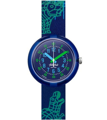Questo orologio Flik Flak per bambini ha un movimento al quarzo affidabile e un display analogico per una facile lettura del tempo. Grazie alla sua impermeabilità fino a 50 metri, è perfetto per i piccoli avventurieri. Con una cassa in plastica blu, quadrante multicolore e cinturino in tessuto multicolore, è un accessorio divertente e resistente.