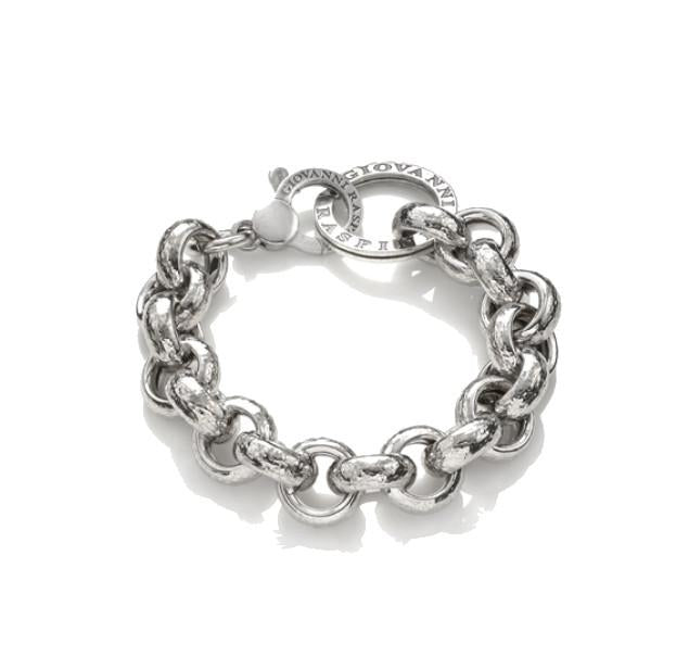Bracciale Giovanni Raspini rolò martellata grande, realizzato in argento 925 con lavorazione martellata. Fatto a mano in Italia.