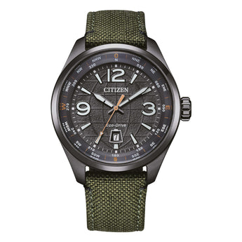 Con l'Orologio Citizen Urban Traveler, potrete viaggiare senza preoccupazioni grazie alla sua funzione Solotempo e il movimento Eco Drive, alimentato dalla luce solare. La cassa in acciaio e il cinturino in nylon verde lo rendono resistente e leggero. Impermeabile fino a 10 bar. Diametro di 42 mm e peso di 84 g.