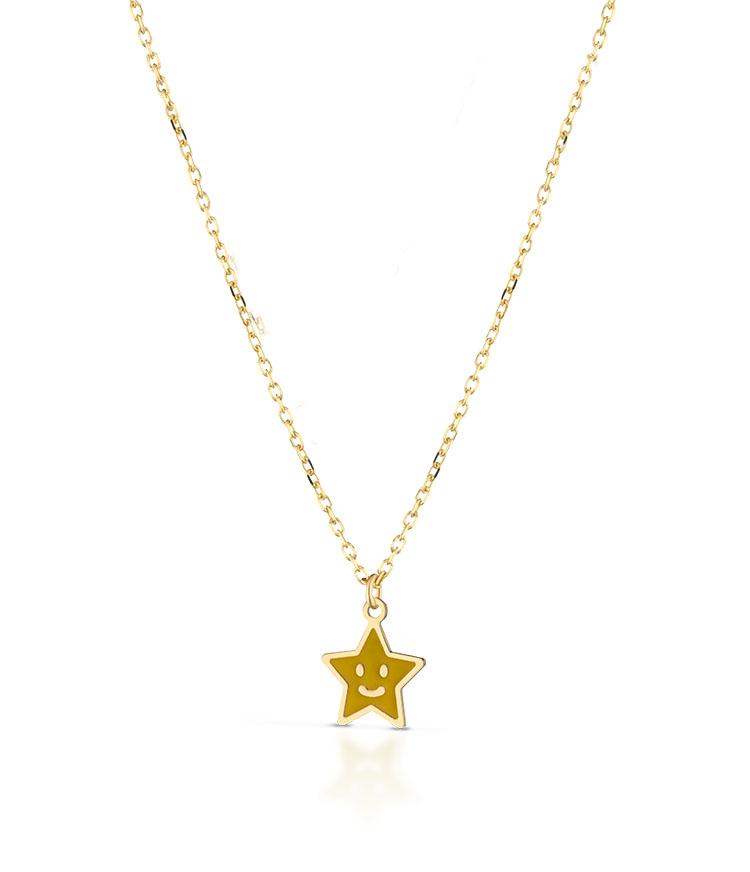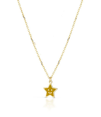 Collana in oro giallo 9kt con ciondolo a forma di stella in smalto giallo. La collana è regolabile in lunghezza da 38cm a 40cm.