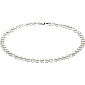 Collana Comete gioielli da donna con perle coltivate in acqua dolce con un diametro di 5/5,5 mm. La chiusura è a moschettone in oro bianco 18 Kt. la lunghezza è 42 Cm.