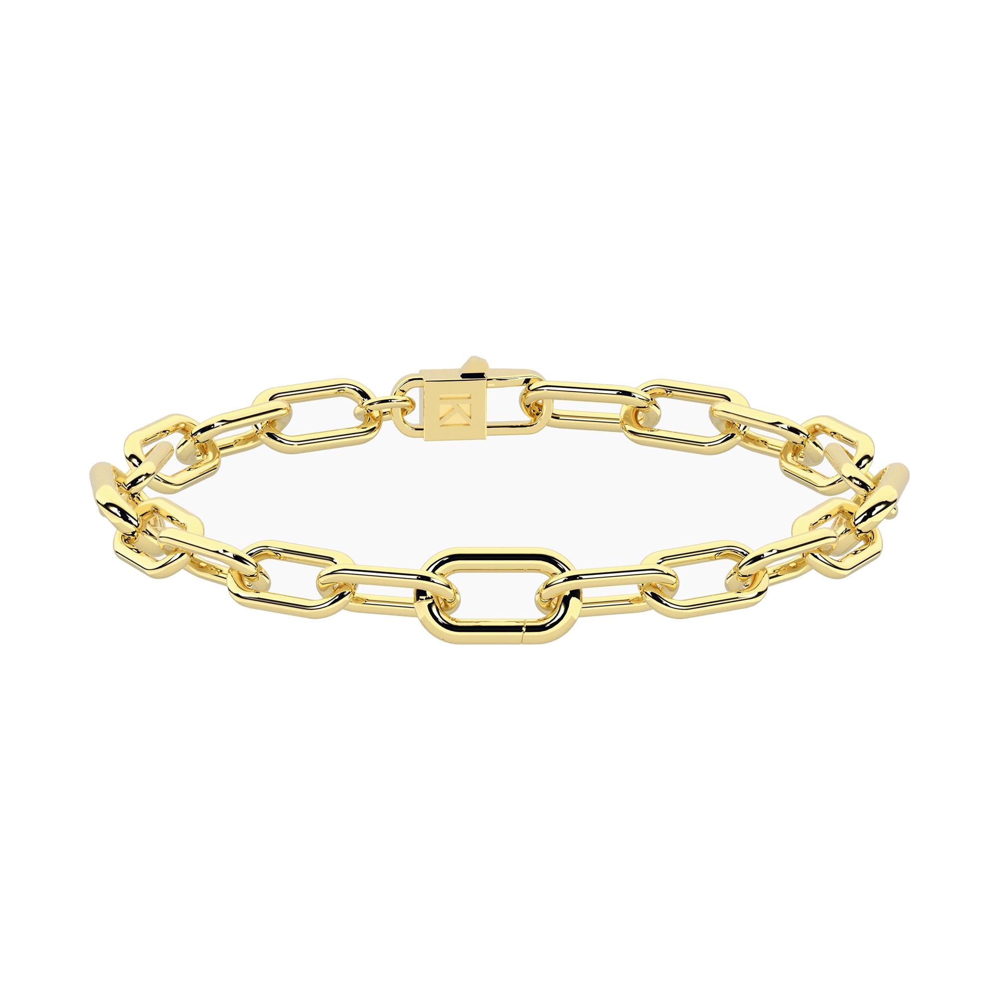 Bracciale donna componibile in acciaio e PVD giallo a maglia larga con catena forzatina e tre link apribili. Inserisci nel link da 1 a 2 charm.