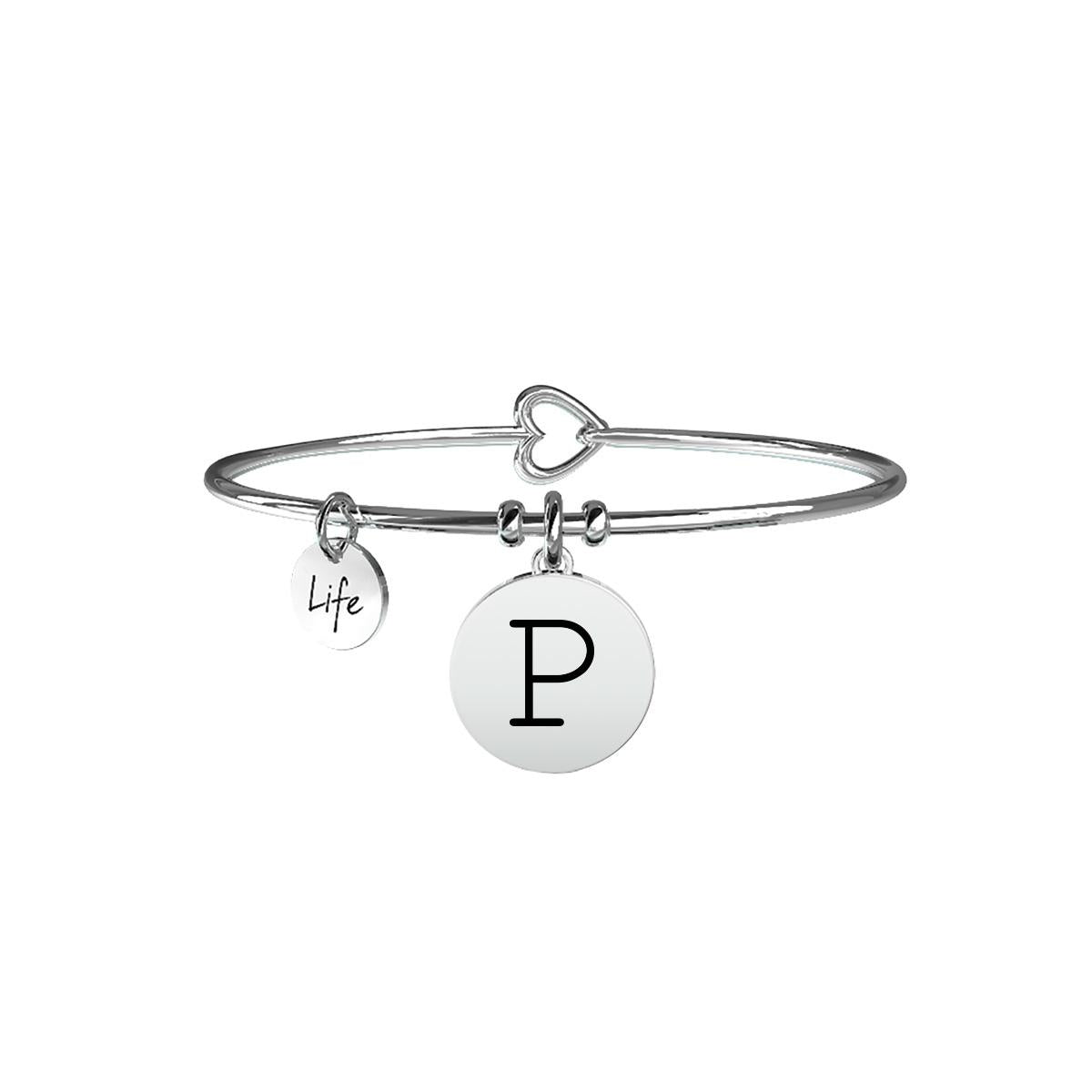 È l'iniziale del tuo nome, di una persona speciale o di qualcuno che ti sta a cuore. La tua lettera preferita, il principio di una parola, una frase, una storia. La vita è un alfabeto di emozioni.Bangle in acciaio con ciondolo tondo con lettera P. • Incisione smaltata sul ciondolo e cristallo sul retro • Chiusura a cuore • Misura unica, diametro 6 cm • Materiale: Acciaio 316L, Cristallo • Designed by Kidult in Italy