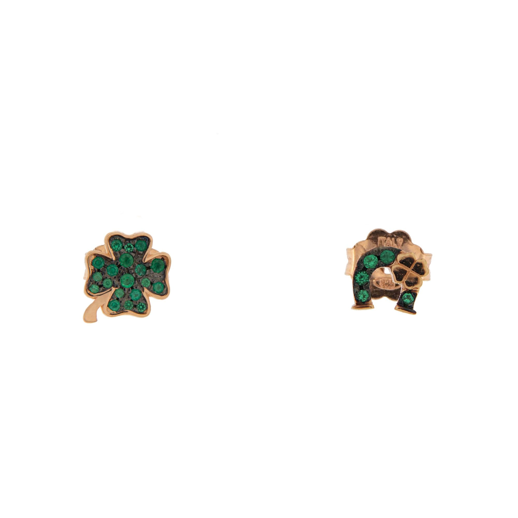 Orecchini in argento dorato placcato oro rosa. Quadrifoglio e Ferro di Cavallo con zirconi colorati micro incastonati.
