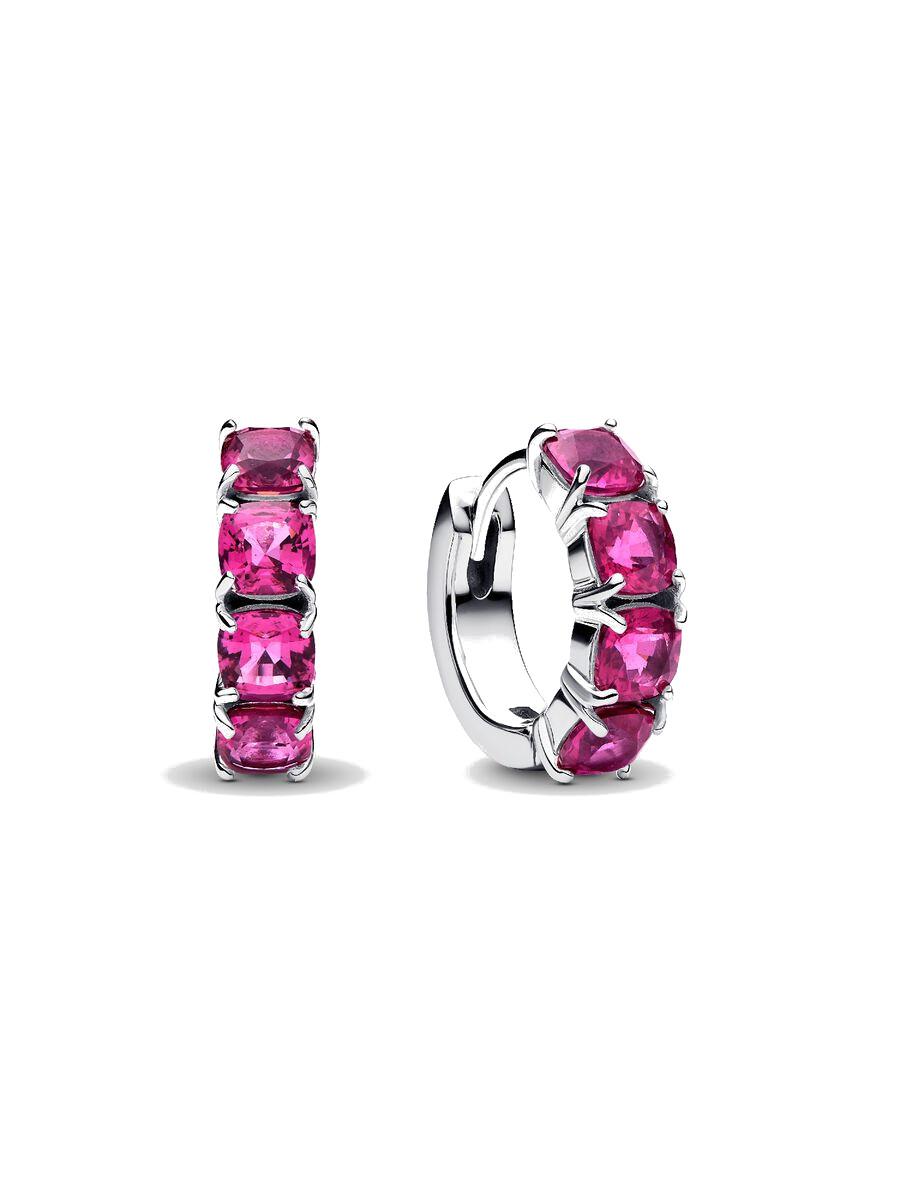 Aggiungi un tocco di luce al tuo look con questi delicati orecchini a cerchio, impreziositi da una fila di cristalli sintetici rosa phlox. Esprimi te stessa con questo design raffinato.