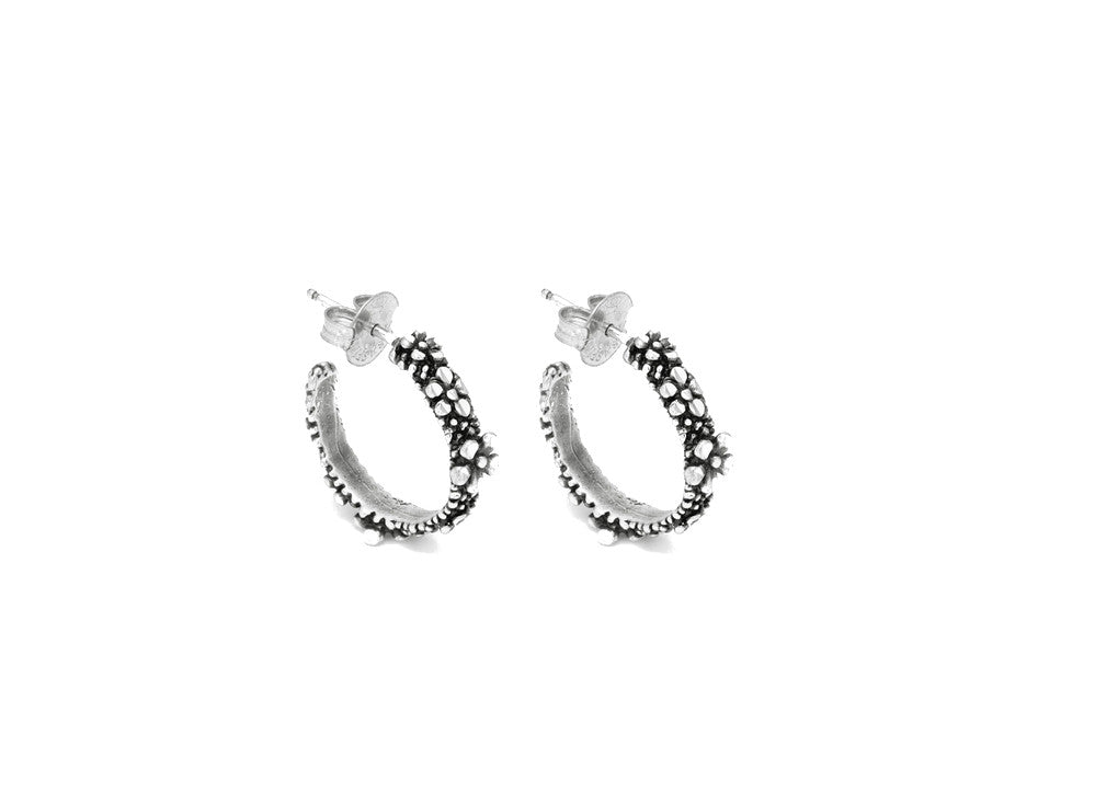 Orecchini a Cerchio con Micro Fiori in Argento Brunito – Fatto a Mano in Italia