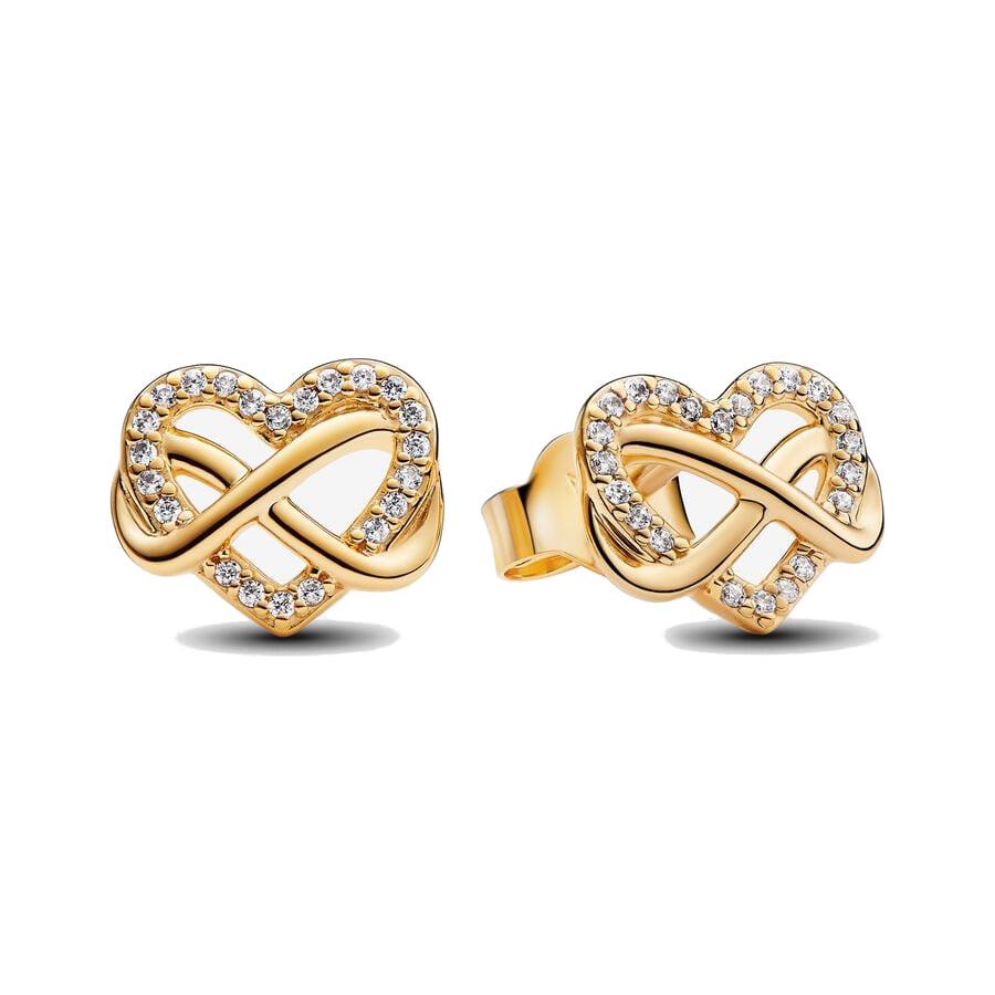 Esprima il suo amore eterno con gli Orecchini Cuore Infinito Pietre Luminose! Realizzati in metallo placcato oro 14k, ogni orecchino presenta un cuore decorato con pietre scintillanti e il simbolo dell'infinito. Indossali per dimostrare il tuo amore o regalali a una persona speciale. Un regalo ricco di significato!