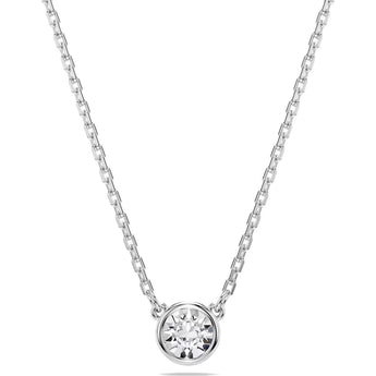 L'eleganza disinvolta è alla tua portata con questo radioso pendente Imber. Sospeso su una delicata catenina con chiusura con gancio a moschettone, il design placcato rodio presenta un cristallo centrale taglio Round in una montatura a castone bombata. Un singolo Swarovski Zirconia è inoltre inserito sul prolungamento per aumentarne ancora la radiosità. Indossa questa creazione per elevare il tuo stile di tutti i giorni.