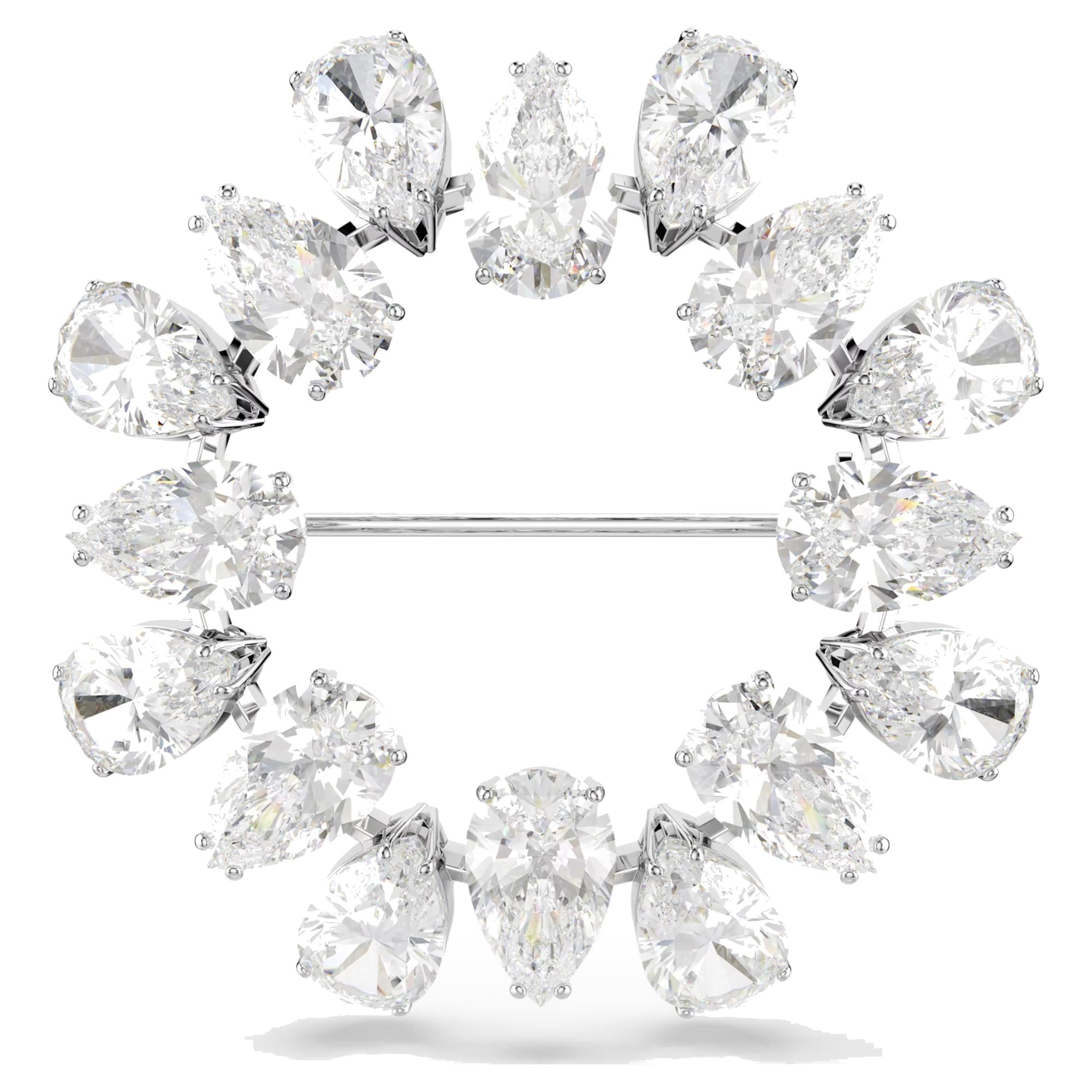 Spilla Matrix Taglio Pear, Bianca, Placcato rodio