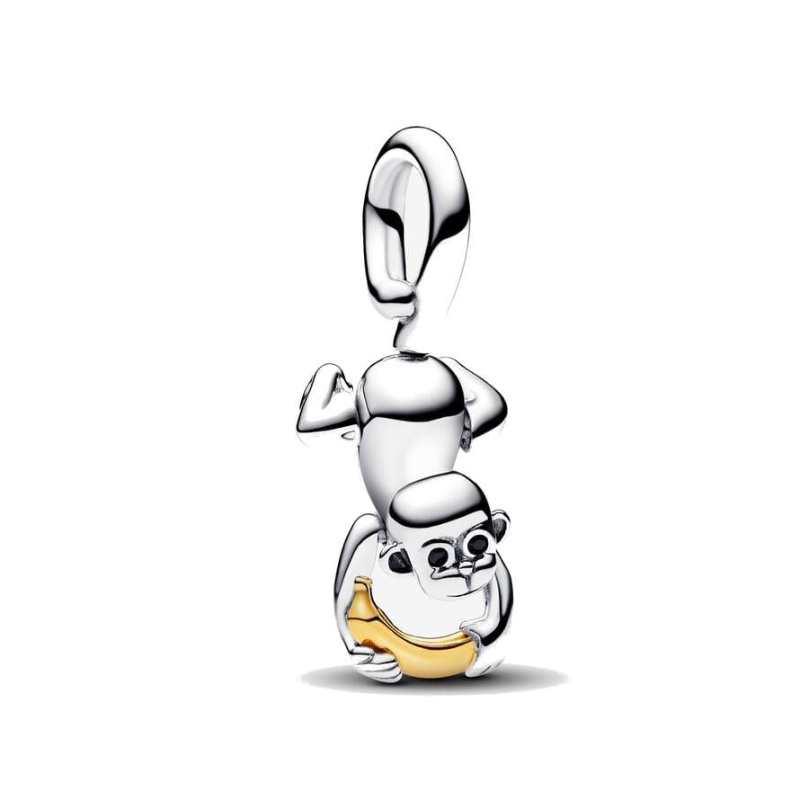 Aggiungi un tocco unico al tuo look con il Charm Pendente Scimmietta con Zampe Mobili. Una scimmia sorridente in Argento Sterling 925 tiene una banana con placcatura Oro 14k e pietra di zirconia cubica. Le zampe e la coda mobili aggiungono un tocco allegro, ispirato alla giocosità delle scimmie. Ricorda di sorridere e divertirti indossando questo gioiello.