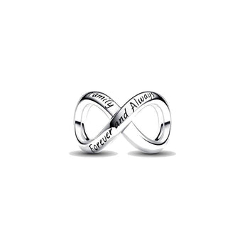 Celebra l'amore senza fine con il Charm "Sempre e Per Sempre" Pandora. L'Argento Sterling 925 forma il simbolo dell'infinito, abbracciando il bracciale o la base per charm. Con incisioni "Family" e "Forever and Always", ricorda che la famiglia porta vera felicità. Da indossare come promemoria dell'amore eterno per i tuoi cari.