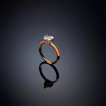 Anello Chiara Ferragni Brand collezione Love Parade, realizzato in metallo placcato in oro giallo 18 kt, smalto di colore arancione e uno zircone taglio cuore trasparente.