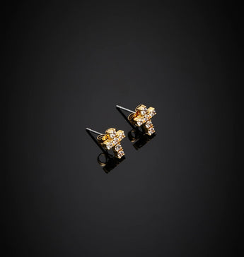 Orecchini a lobo a forma di croce con zirconi, placcati oro.