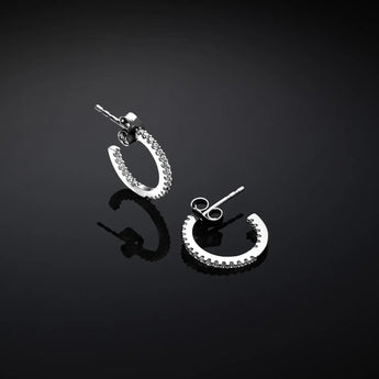 Questi orecchini cerchio in argento 925 placcatura rodio silver sono caratterizzati da una fila di zirconi bianchi luminosi. Con un diametro di 1,5 cm, donano un tocco di eleganza e luminosità al tuo look. Ideali per ogni occasione, questi orecchini sono un must-have per ogni donna che ama la raffinatezza e lo stile.
