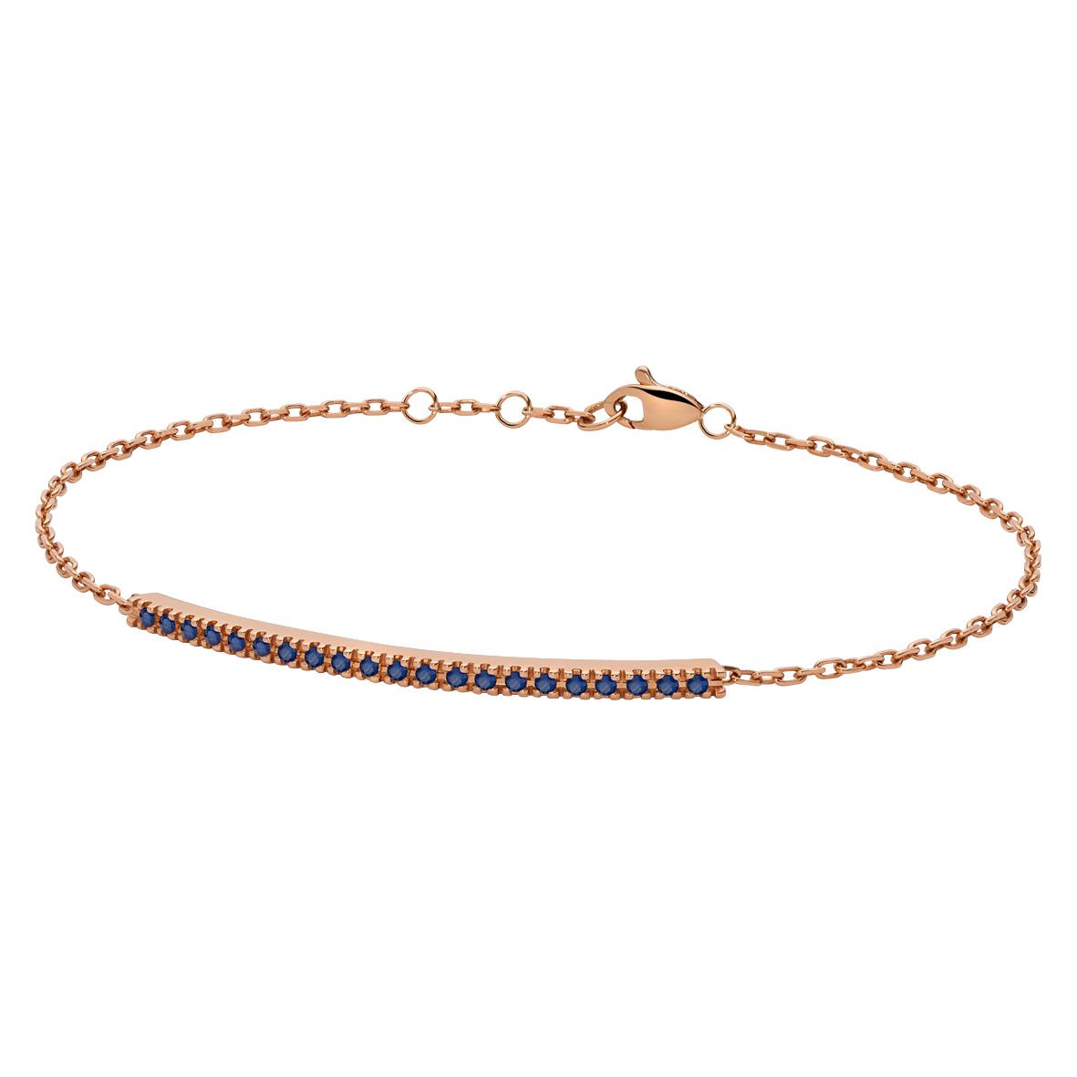 Bracciale paddle gioielli con barretta tennis in oro rosa 18 Kt e zaffiri con una caratura totale di 0,20 ct. Il bracciale è in oro rosa con una lunghezza regolabile da 17 a 20 cm e chiusura a moschettone.