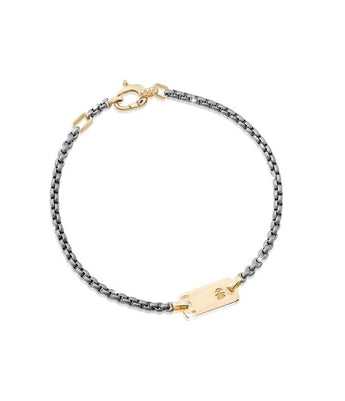 Bracciale in titanio con piastrina e moschettone in oro giallo con incisione femminuccia