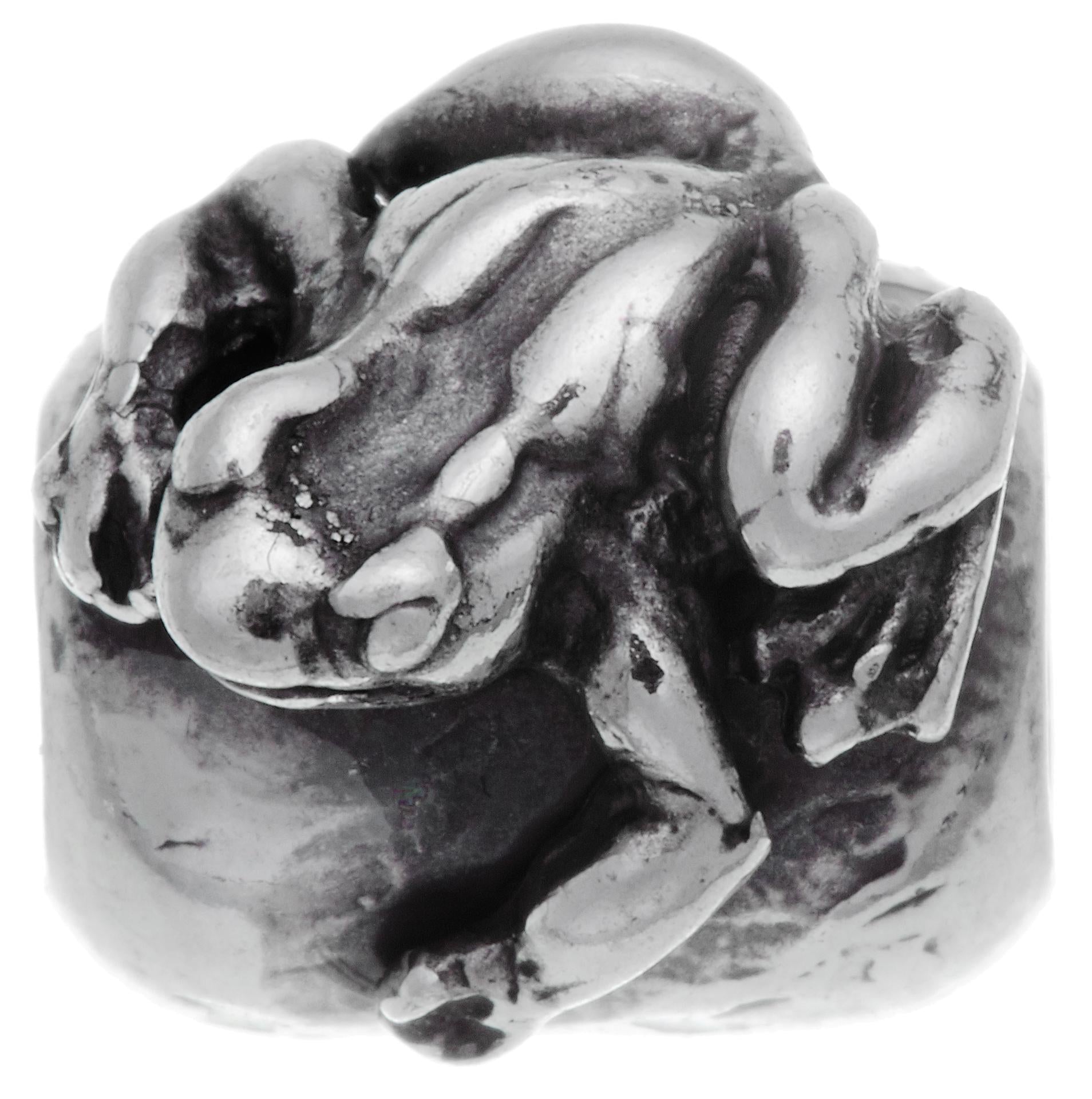Bead Giovanni Raspini, referenza 09990, realizzato in argento 925 con una lavorazione lucida e brunita che va a formare un barilotto con sopra una rana. Da utilizzare con bracciale infilo referenza 9207. Il peso è 2 gr. Il charm è stato realizzato a mano in Italia.