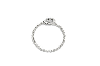 Un bracciale essenziale, ma di grande raffinatezza, pensato per accogliere i tuoi charms e creare una composizione unica e personale. Realizzato in pregiata catena rolò in Argento 925, è impreziosito da una delicata decorazione a forma di quadrifoglio, realizzata con la tecnica della fusione a cera persa, secondo l'antica tradizione orafa italiana.