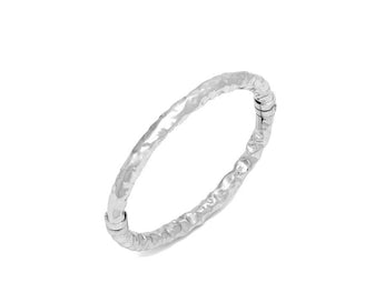 Il Bracciale Giovanni Raspini rigido è realizzato a mano in Italia e lavorato con argento 925. La misura interna ovale è di 5,5x6 cm, e la sua apertura è dotata di una molla che ne assicura una presa salda.