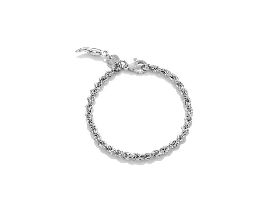 Giovanni Raspini Mini Torchon è realizzato in argento 925, con una lunghezza di 19 cm e una chiusura a moschettone per assicurare una sicura tenuta. La qualità artigianale italiana è garantita.