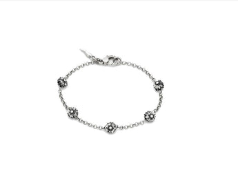 Un gioiello delicato e luminoso che racchiude tutta la grazia della natura in una forma essenziale. Il bracciale Margherite è realizzato in argento 925 e impreziosito da piccoli fiori diamantati a mano, petalo per petalo, che si alternano con ritmo armonioso lungo la catena mini-rolò.