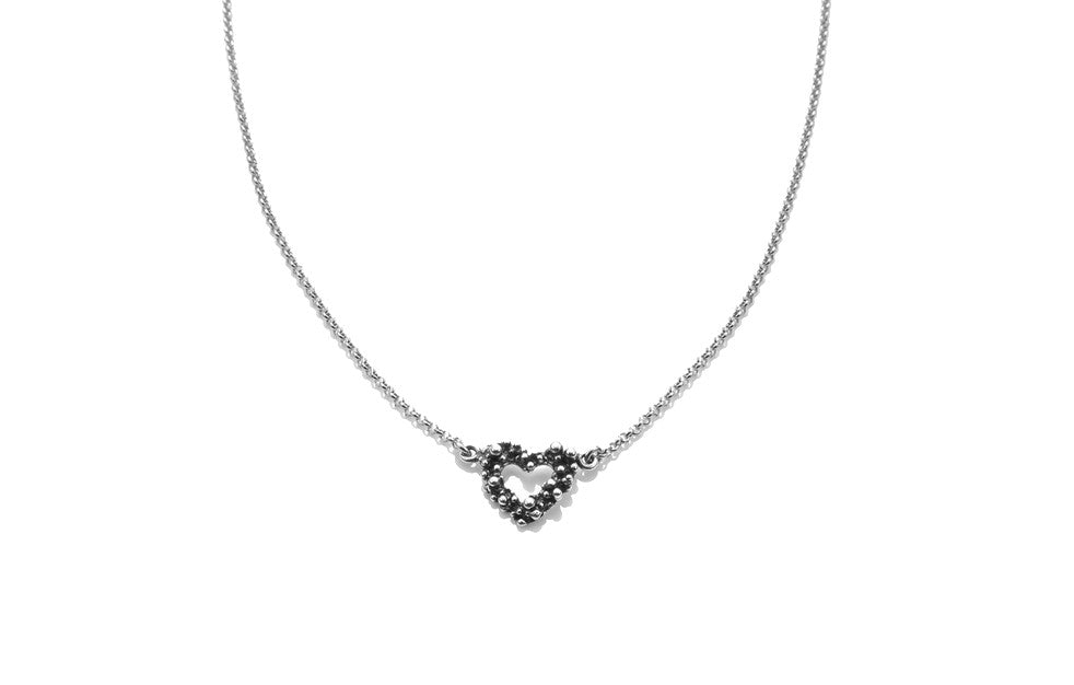 Collana con Pendente Cuore in Argento Brunito – Stile Perlage, 43 cm