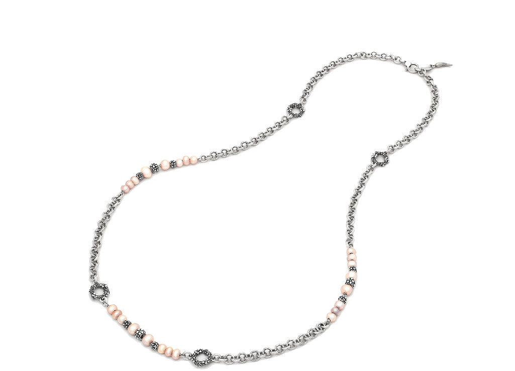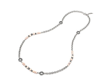 Collana Chanel in Argento Martellato e Perle Rosa Naturali – 92 cm