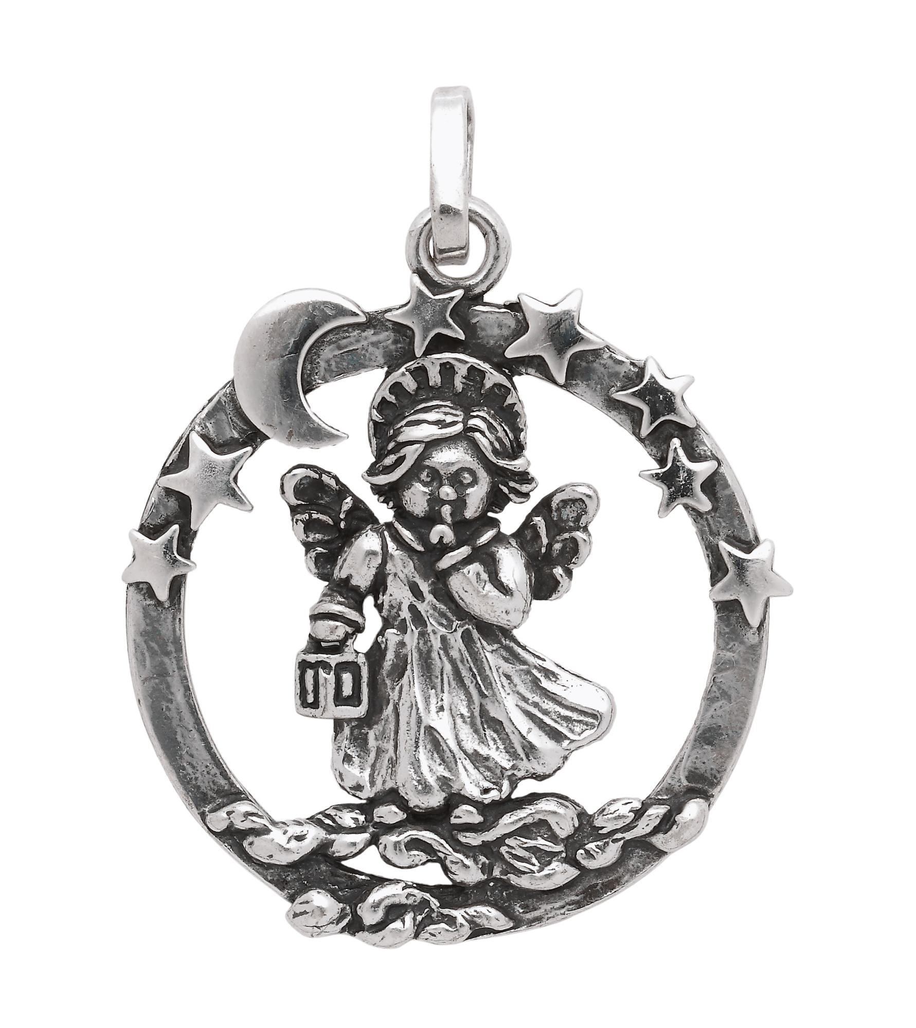 Charm Medaglione Angelo diametro 45 mm in Argento 925.