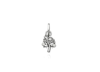Una pianta che protegge. Mini charm in argento a forma di albero della vita realizzato completamente a mano in azienda. Con una luminosità sorprendente, amplificata ancor più dai micro-zirconi trasparenti montati con effetto pavé.