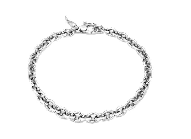 Bracciale Raspini a catena maglia ovale, realizzata in argento 925 con finitura lucida. La lunghezza è 19 Cm. Chiusura con moschettone.