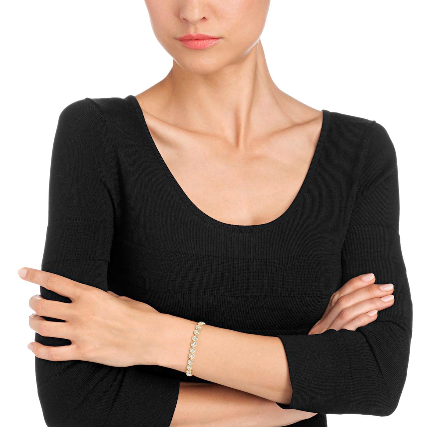 Un classico intramontabile. Questo bracciale placcato nella tonalità oro presenta una fila di Clear Crystal rotondi, ciascuno incorniciato da uno scintillante pavé di Clear Crystal. Abbinandosi perfettamente agli altri accessori della collezione Angelic, è perfetto come idea regalo.