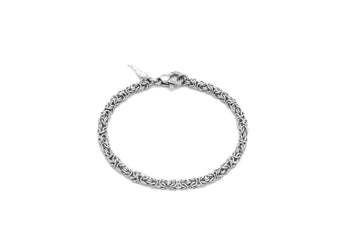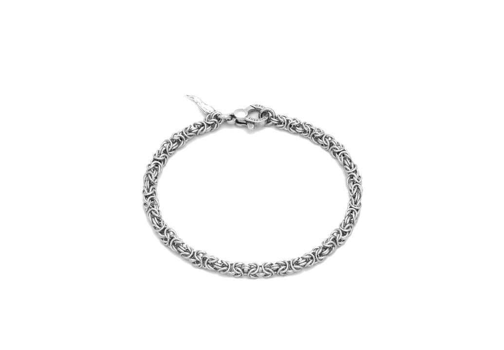 Una classica catena che ha fatto la storia della gioielleria, da sempre best seller del brand, diventa prezioso bracciale in argento. E' la maglia bizantina in versione mini mini, lavorata artigianalmente, col suo particolarissimo ed elegante intreccio. Un gioiello versatile che si presta ad un indosso sia maschile che femminile.