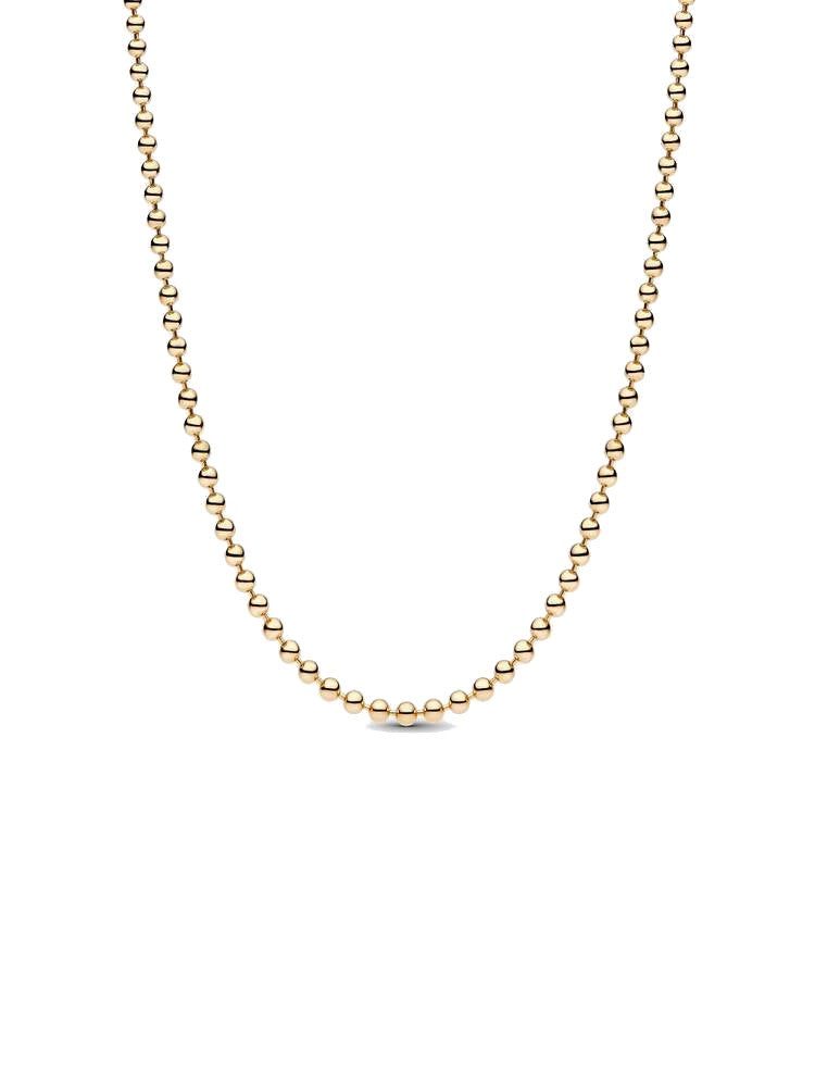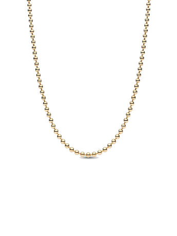 Essenziale ma distintiva, questa catenina a sfere rifinita in oro aggiunge un tocco unico e luminoso a qualsiasi outfit. Il suo design delicato la rende perfetta da indossare da sola per uno stile minimal oppure da personalizzare con fino a tre charm o pendenti, creando una composizione che racconta la tua storia.