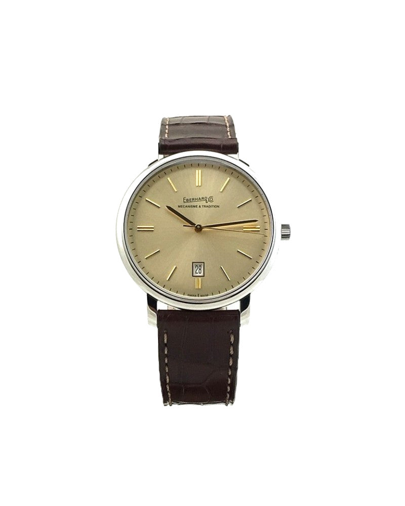 Il vetro zaffiro antiriflesso garantisce un'eccellente resistenza ai graffi e una lettura ottimale dell'ora in ogni condizione di luce. Il cinturino in pelle marrone completa il design con un tocco caldo e raffinato, assicurando comfort e vestibilità.