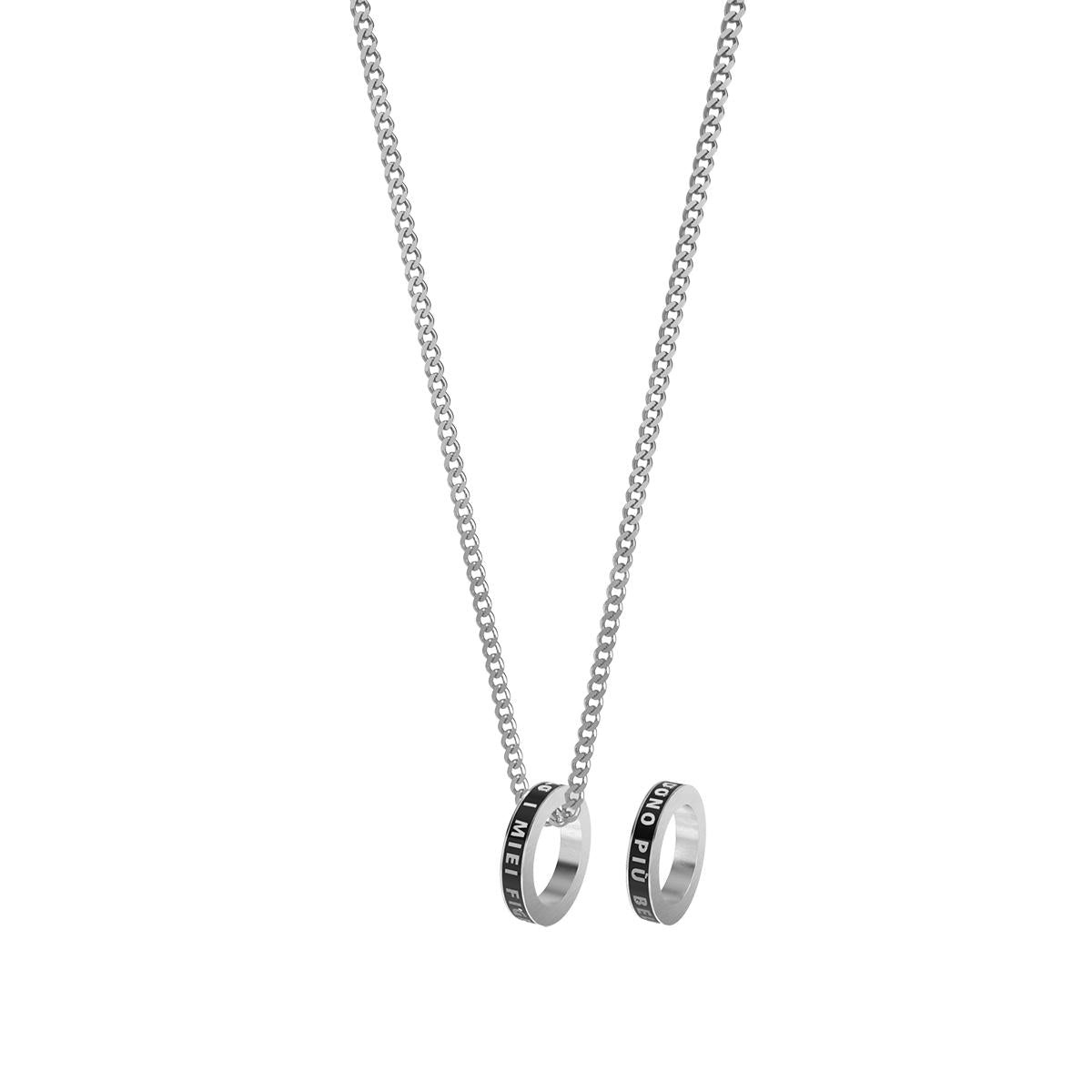 Ci sono doni che non puoi comprare. Ma quando arrivano ti cambiano la vita.Collana in acciaio con ciondolo satinato a cerchio nero e catena groumette. • Chiusura con moschettone • Misura unica, lunghezza 55 cm • Materiale: Acciaio 316L con Pvd Nero • Designed by Kidult in Italy
