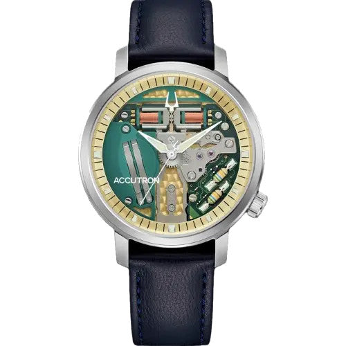 Il cuore dell'orologio è il Calibro Accutron 314, movimento a diapason da 360 Hz interamente progettato e realizzato internamente.