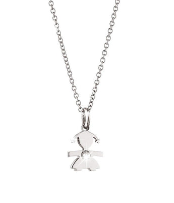 Collana realizzata in oro bianco 18kt con pendente a forma di femminuccia ed impreziosito da un diamante taglio brillante.