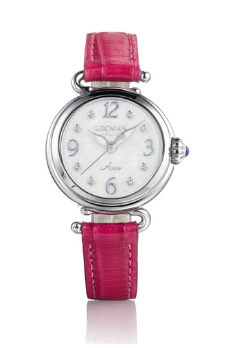 Orologio Locman da donna, cassa in acciaio inossidabile con un diametro di 32 mm. Il quadrante è di colore bianco con numeri arabi. Meccanismo al quarzo con funzione di solo tempo. Resistenza all'acqua 5 atm.