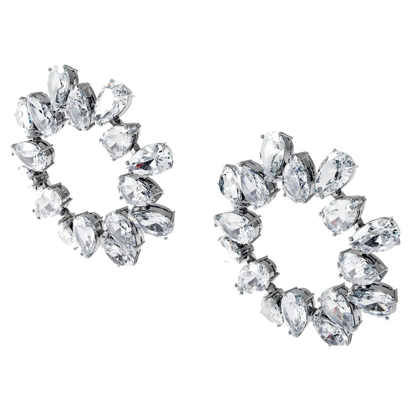 Oggetto scultoreo sensazionale, questi orecchini di cristallo sono genialmente realizzati con cristalli taglio pear trasparenti; li completa una montatura placcata in rodio. Indossati sulle spalle scoperte, questi orecchini di cristallo possono abbinarsi con le collane della famiglia Millenia per un effetto sfavillante, oppure si indossano da soli su un semplice capo nero con scollo a V, per contrasto con il design circolare. Questi orecchini sono parte della famiglia Millenia e sono firmati dal Direttore creativo Giovanna Engelbert per la Collection I.