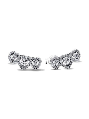 Per il passato, il presente e il futuro. Questi orecchini a lobo in Argento Sterling 925 sono impreziositi da tre pietre a forma di cuore, collegate da un delicato pavé di punti luce che ne esalta la brillantezza. Un simbolo luminoso dell'amore in tutte le sue fasi, perfetto per celebrare legami speciali e momenti indimenticabili.