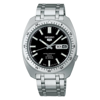 Celebra il leggendario stile SKX con la nuova Seiko 5 Sports SKX Heritage Design Limited Edition. Questo orologio esclusivo rende omaggio al design originale con dettagli accuratamente riprodotti, incluso il logo vintage "5" posizionato a ore 12 e un datario dallo stile rétro con colori invertiti: giorno su sfondo bianco e data su sfondo nero.