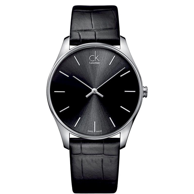 Orologio Ck, referenza K4D211C1, cassa in acciaio inossidabile con un diametro di 38mm, il quadrante è di colore nero con indici, il vetro è minerale. Il cinturino è in pelle nera con fibbia a ardiglione. Il meccanismo è al quarzo Swiss Made, con funzione solo tempo. La resistenza all'acqua è di 3 atm.