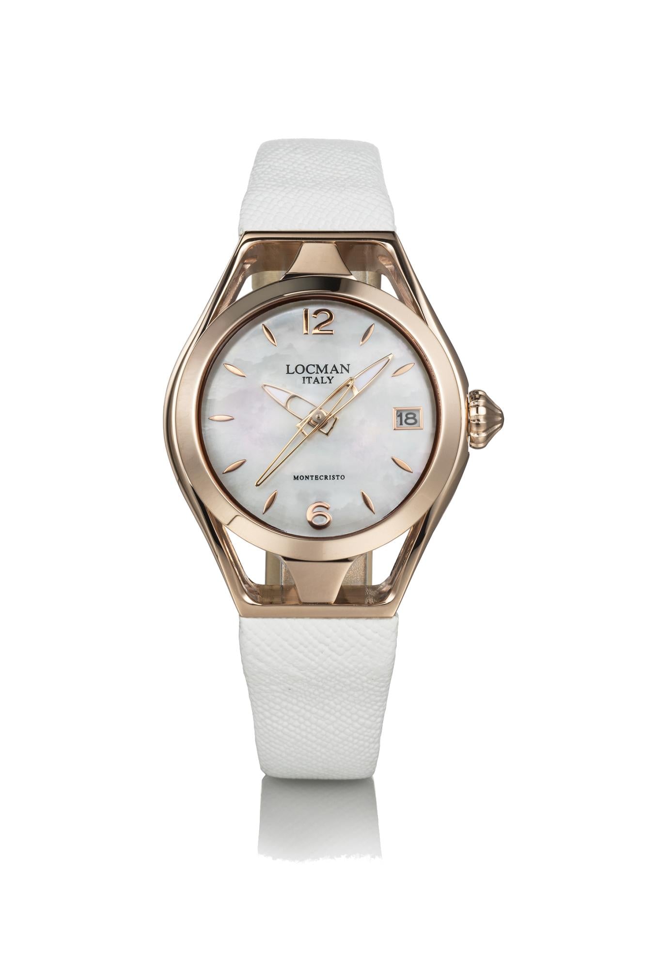 Orologio Locman della collezione Montecristo, cassa in titanio con un diametro di 36mm, quadrante di colore bianco con indici, il meccanismo è al quarzo con funzione solo tempo. Il cinturino è in pelle bianco. La resistenza all'acqua è di 5 bar.