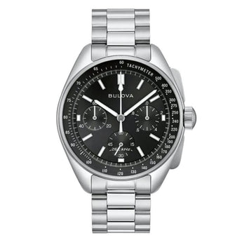 Orologio Bulova Lunar Pilot, cassa in acciaio inossidabile con un diametro di 43,5 mm e uno spessore di 13,2 mm. Il quadrante è di colore nero, vetro zaffiro antigraffio, fondello a vite. Il movimento è al quarzo 262 kHz precisionist con funzione di orario e cronografo.