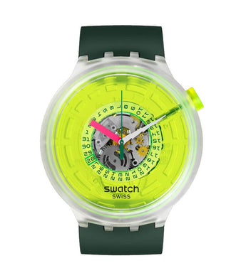 Questo orologio Swatch Neon presenta un movimento al quarzo, è impermeabile fino a 3 Bar e la cassa è realizzata in materiale di origine biologica. La mezza fibbia è in alluminio e il cinturino ha un colore verde. Il quadrante è trasparente, così come il colore della cassa. La forma è rotonda ed è confezionato in una speciale scatola.