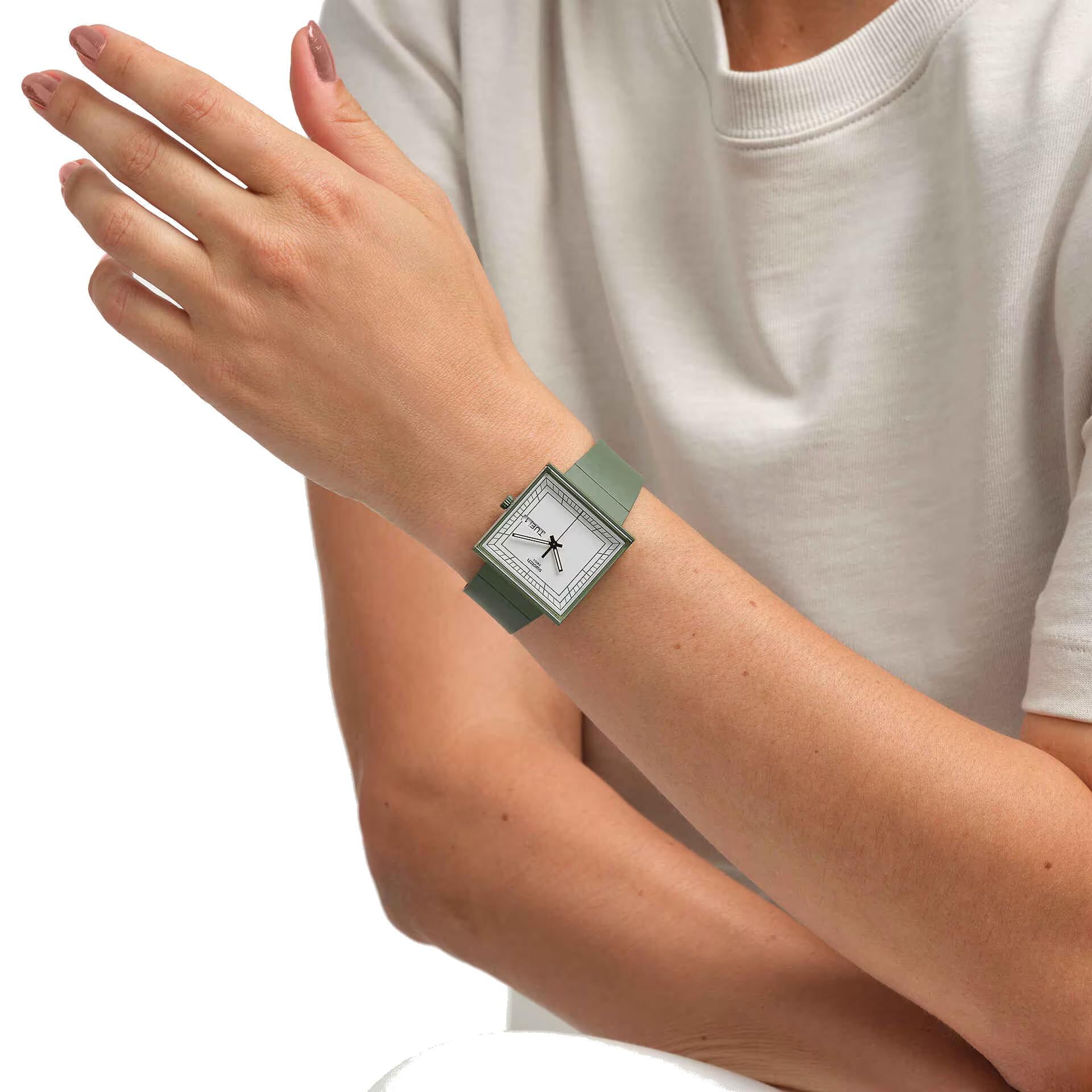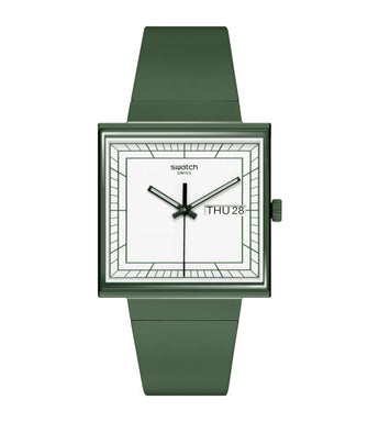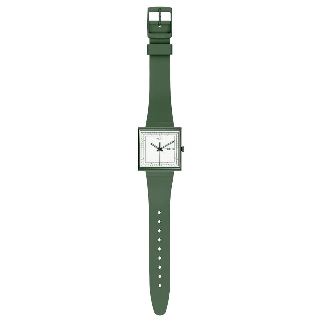L'Orologio Swatch quadrato what if green è alimentato al quarzo ed è impermeabile fino a 2 Bar. Il cinturino è realizzato con materiale di origine biologica, e la fibbia, la cassa e la fodera sono in bioceramica, suggerendo uno stile moderno ed eco-friendly. Questo modello fa parte della collezione Bioceramic What If? con cinturino verde, quadrante bianco e cassa verde quadrata.