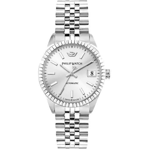 OROLOGIO PHILIP WATCH CARIBE - R8223597504 - Philip Watch experience: Lady, Genere : Donna, Materiale e finitura cassa: Acciaio, Misura cassa: 3,5 cm, Spessore cassa: 10,75, Vetro: Vetro zaffiro, Materiale cinturino: Bracciale in metallo, Colore cinturino: Argento, Chiusura: Double push buckle, Movimento: Automatico, Swiss made: Sì, Water resistant: 10 atm, Garanzia: Ufficiale 2 anni Philip Watch, Confezione: Originale Philip Watch