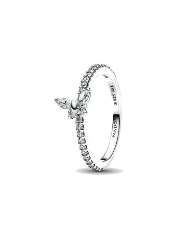 Aggiungi un tocco di splendore discreto e raffinato al tuo look con questo elegante anello in Argento Sterling 925. Il design presenta una farlalla in posizione obliqua, impreziosita da zirconia cubica incolore che cattura la luce con ogni movimento. Simbolo di trasformazione e bellezza, questa creazione rappresenta la delicatezza e la forza di chi la indossa.
